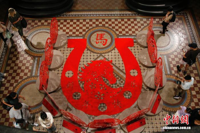 2026农历马年春节将至,澳大利亚悉尼节日氛围浓。在购物中心维多利亚女王大厦,马年主题装置吸引众人观赏。中新社记者薄雯雯摄
