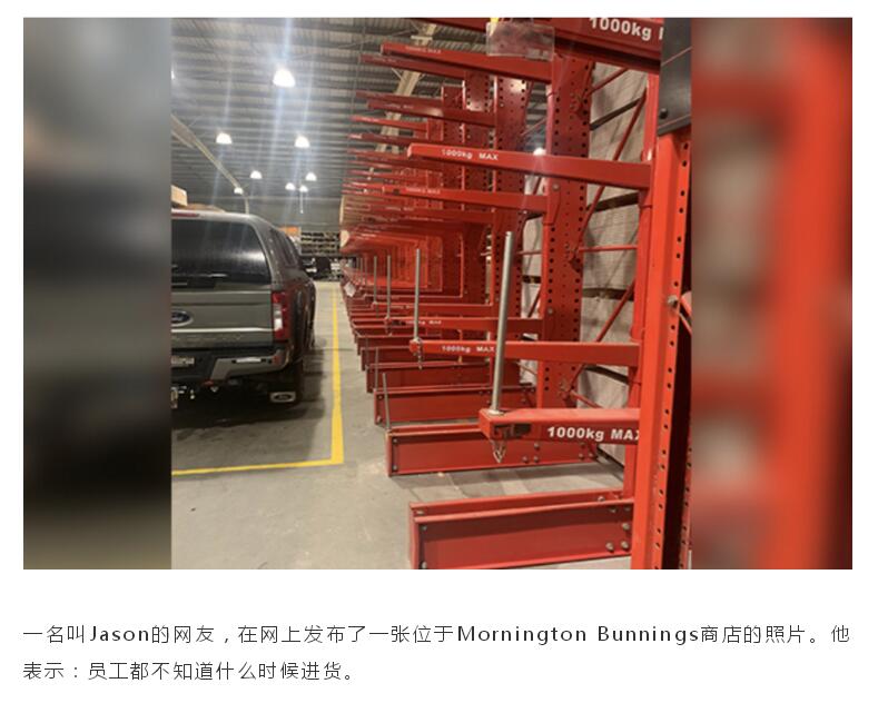 一名叫Jason的网友,在网上发布了一张位于Mornington Bunnings商店的照片。他表示:员工都不知道什么时候进货。