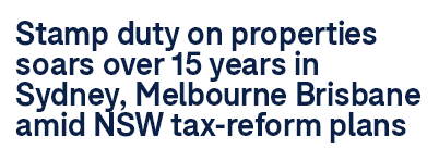 最新研究数据显示,悉尼、墨尔本、布里斯班等首府城市的房产印花税在过去15年里飙升。