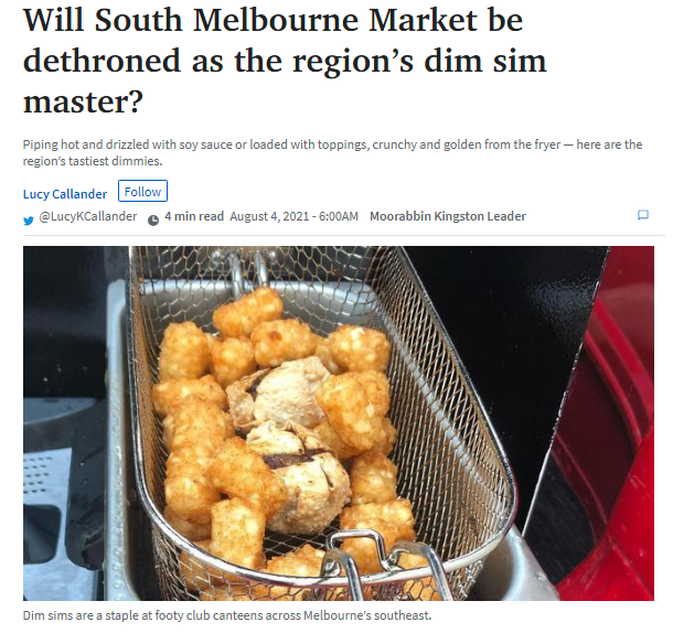 无论是蒸还是炸,新鲜制作的或从冰箱中取出来的半成品中式“点心”(dim sim)都是墨尔本的一大标志。尽管南墨尔本市场的“点心”可能是最出名的,但现在涌现了很多可以被称为最美味的角逐者。