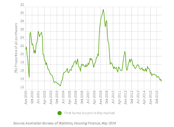澳洲统计局周一公布的数据显示,澳洲购房者中,首次置业人群比例降至2004年以来最低水平。据Domain报道,澳洲统计局公布最新住房金融数据,5月首次置业人员占所有购房
