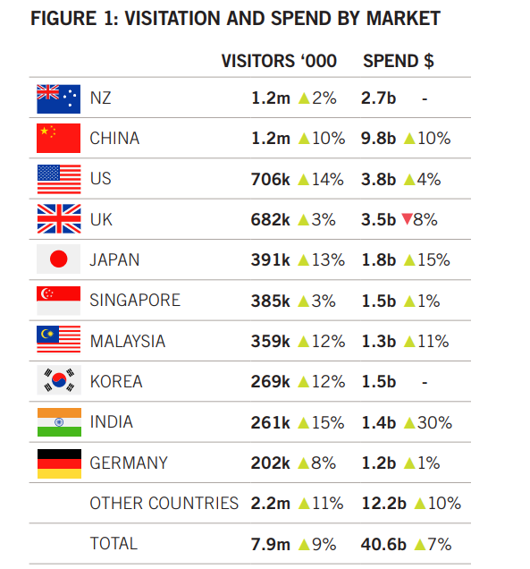澳大利亚旅游调查局(TourismResearchAustralia)发布了2017年的国际游客调查报告(InternationalVisitorSurvey),报告显示截至今年6月份的一年里,共有780万国际游客