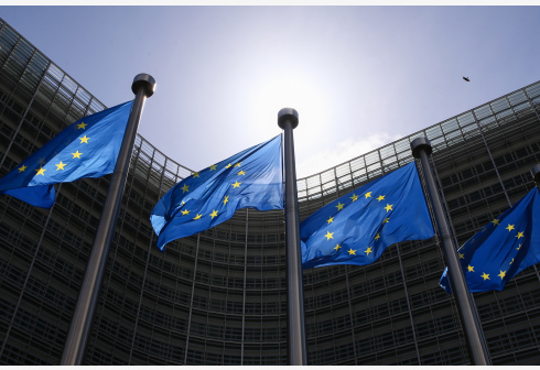 欧盟旗帜在比利时布鲁塞尔的欧盟总部外飘扬