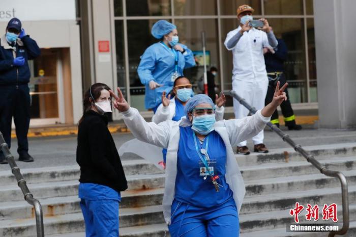 纽约西奈山西区医院医务工作者向鼓掌民众表示感谢。中新社记者廖攀摄美国约翰斯·霍普金斯大学实时统计数据显示,截至北京时间24日7时31分许,全球新冠病毒感染病例