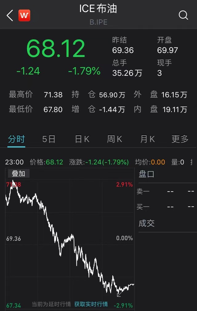 国际油价周一震荡下挫,盘中一度站上70美元,这也是油价自疫情以来首次升至如此高的水平,不过随后涨势逐级回落。消息面上,沙特阿拉伯石油设施遭袭。Wind数据显示,截