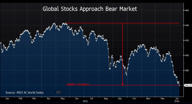 周四(1月21日),花旗集团警告,随着央行日渐退出刺激路线以及中国发展减速增长放缓,全球经济处于衰退的边缘。该行将2016年的全球增长预测从2.8%下调至2.7%,并削减了