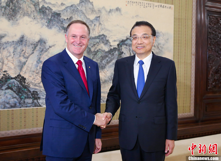 7月20日下午,中国国务院总理李克强在北京中南海紫光阁会见新西兰前总理约翰·基。中新社记者 刘震 摄