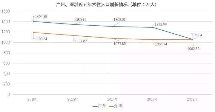 从以上两张图可以清晰的看出,广州的户籍人口一直都多于深圳,但从2011年开始,深圳户籍人口增幅明显快于广州。
