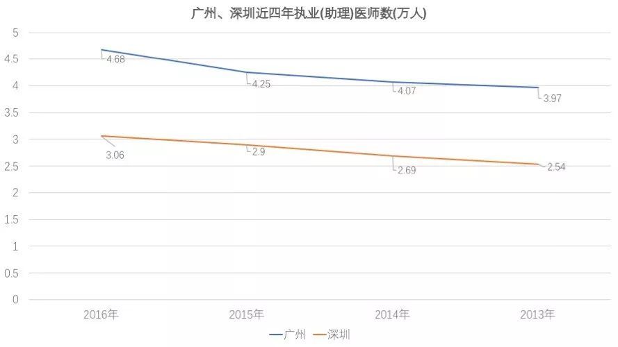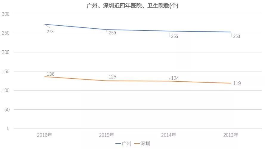 医疗方面,广州不管是执业医师数还是医疗机构数量都比深圳多很多。