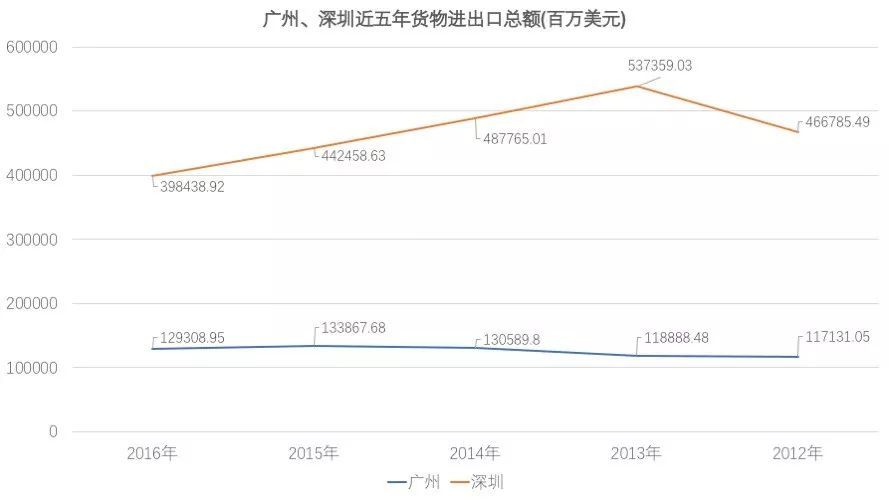 深圳的这几年进出口总额下降的比较厉害,但总量基本上保持在每年4000亿美元左右。