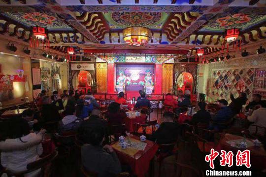华文媒体代表在黄龙溪古镇赏川剧。 王磊 摄