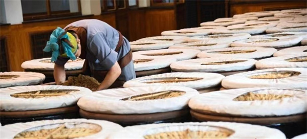 ---熏,高温熏醅7200分钟,醋醅色泽棕红,熏香浓郁。