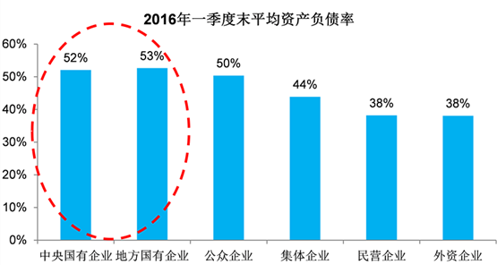 图表1:国有企业平均资产负债率更高。 资料来源:Wind