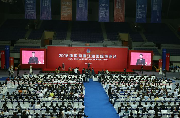 2016中国南通江海国际博览会开幕式现场江苏省侨办副主任孙彬在恳谈会上致辞南通市“一带一路”海内外企业对口合作恳谈会现场南通市人民政府副秘书长瞿永国主持恳