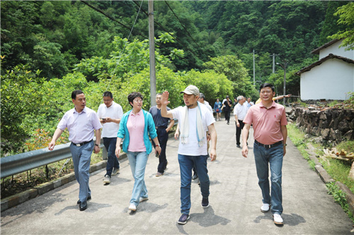 中共金华市婺城区委书记蔡艳(前排左二)陪同著名音乐人陈越(前排左三)考察白沙溪流域。 文: 吴重生 &