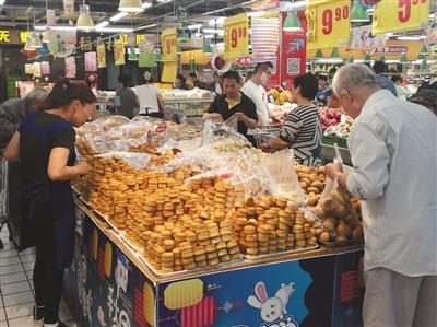 部分老字号散装月饼比礼盒更畅销;以月饼搭售名酒等礼品的“奢华礼盒”多现身五星级酒店9月22日,马家堡西路的一家超市内,市民在散装区选购月饼。新京报记者周依摄