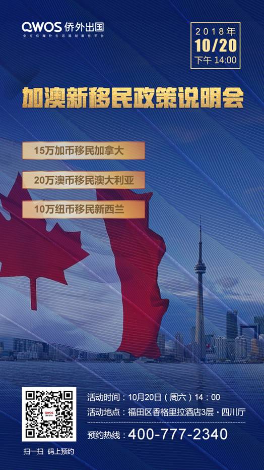 10月20日,深圳侨外邀请加澳新移民投资专家现场解析各国的投资移民政策,并分享大量成功案例,帮忙更多在观望中的投资人了解真实的加、澳、新国家,解决众多困惑,量身定制移民方案,最终实现移民梦想!