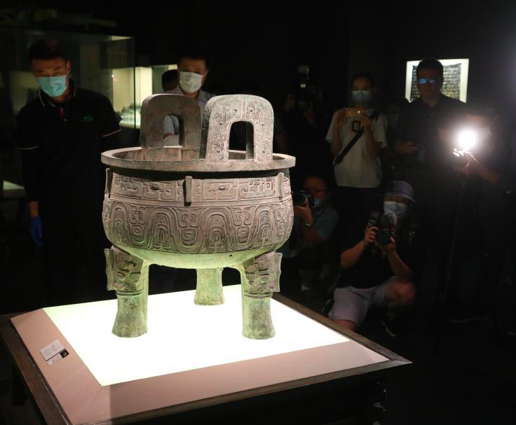 图为位于上海博物馆一楼展厅内的“大克鼎”完成布展。