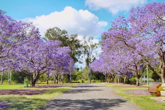 昆士兰的Goodna以宁静的蓝花楹小路闻名。(图片来自澳洲广播公司)新州北部的格拉夫顿(Grafton)被誉为“蓝花楹之城”。每逢暮春初夏时节,小镇里成片蓝花楹树绽放出