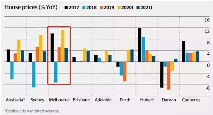 另外澳新银行此前也预测, 2020年墨尔本将成为澳洲房价增值最大的首府城市,涨幅达到12%,高于去年十月预期3%。