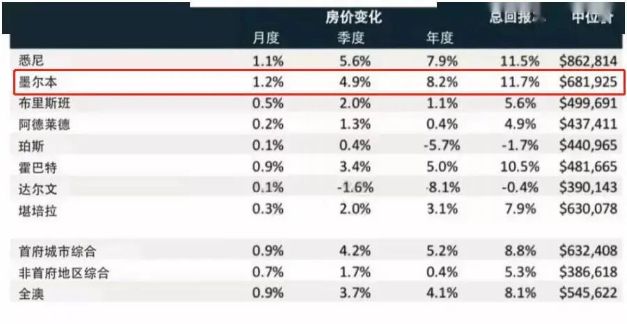 根据澳洲上季度最新的房产数据报告显示,2019年第四季度,墨尔本房屋中位价突破85万澳元,创历史新高,同时房屋整体涨幅领跑澳洲。
