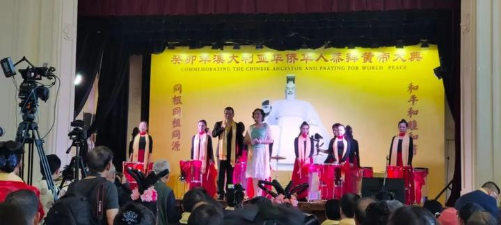 香气袅袅,温馨四溢。11点49分,两位大典主持人,澳洲著名华人主持、西悉尼大学资深中文教授赵立江,原上海东方卫视著名节目主持人李娜共同宣布:癸卯年澳大利亚华侨华人恭拜黄帝大典典礼告成。 今年的澳大利亚拜祖热情空前高涨,大典规模空前扩大。本届大典由澳大利亚非物质文化遗产发展研究中心、澳大利亚爱尔思文化交流协会、澳大利亚国际文化产业协会、澳洲潮州同乡会等联合主办,得到众多在澳华社及各界的大力支持。通过网络直播,场内场外两万多华侨华人共同参与这一传统的文化盛典。 九项仪程之后,澳大利亚黄河合唱团、澳大利亚东方歌舞团、全球华人艺术协会澳洲艺术团联袂为大家奉献了精彩的文艺演出。同时,组委会还征集了澳洲华人书画作品,在拜祖同时进行展出交流,国际华语全媒体、澳洲同城也专门做了网络直播。