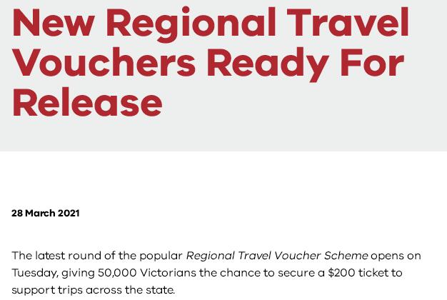 维州代理旅游厅长普尔福德(JaalaPulford)28日宣布,维州第三波地区旅游券将于30日上午10时发放。此次发放的旅游券共5万份,每份价值200元,可在维州全州范围内使用。