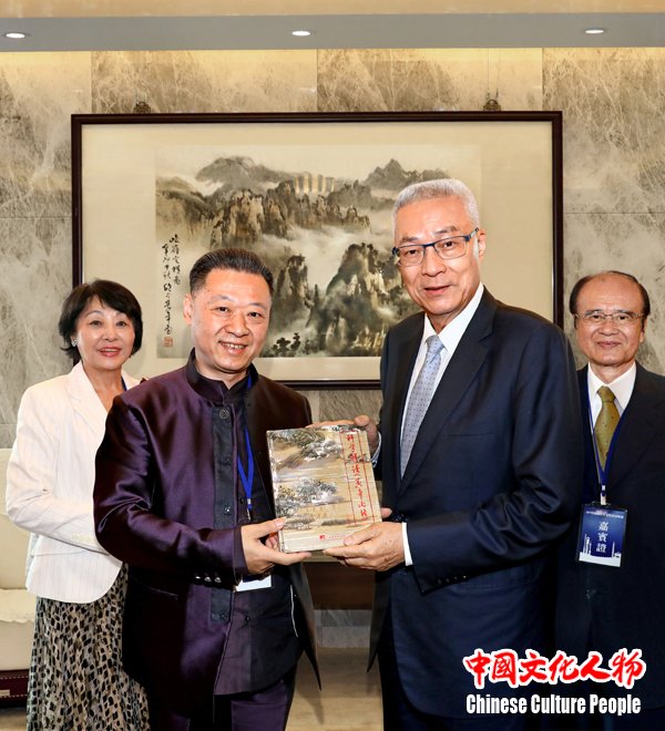 吴敦义亲切会见王寅,并对王寅弘扬中华优秀传统文化、与台湾民众及专家学者分享科学解读《黄帝内经》取得的成就给予高度赞扬