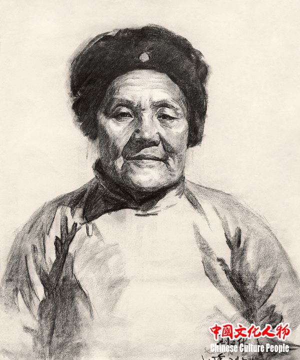 《老太太》 素描 1975年 韩玉臣作品
