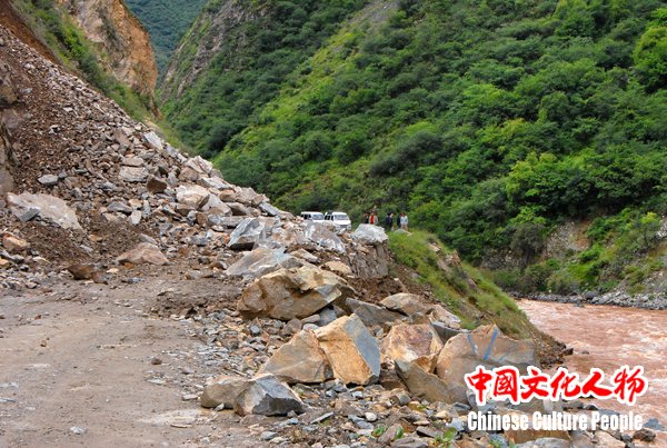 韩玉臣一行在西藏途中遇到塌方