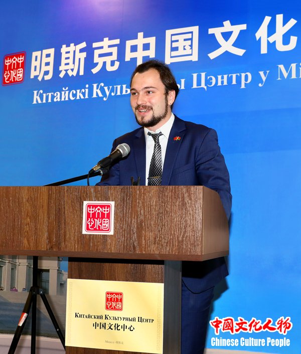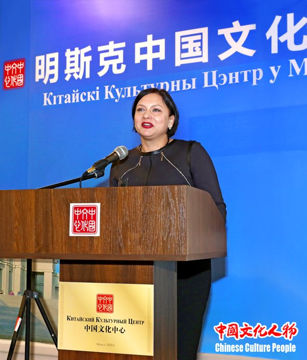 白俄罗斯国家文化联盟副主席国沙致辞,对明斯克中国文化中心推动中白两国文化交流所作出的贡献表示赞赏