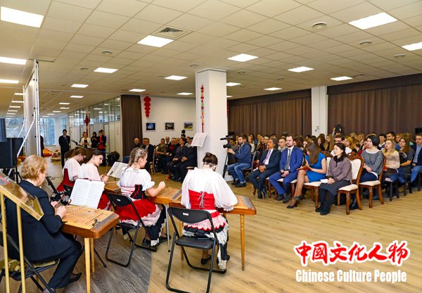 庆典现场,明斯克中国文化中心邀请中国文化艺术爱好者演奏中国传统乐器,用美妙的音乐诠释中国文化的博大精深