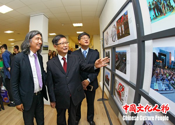 中国驻白俄罗斯大使崔启明,中国美术馆馆长吴为山在明斯克中国文化中心主任张宏伟的陪同下参观明斯克中国文化中心