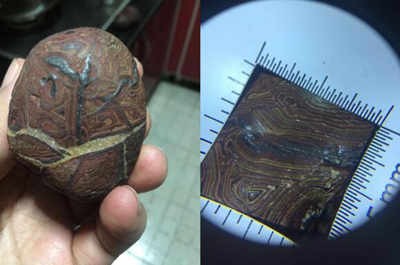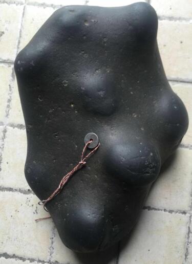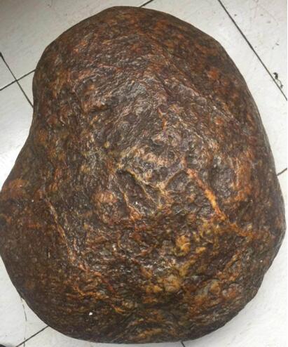 除了山河平川, 杜俊平还经常在老家峨眉山市和乐山奇石古玩城寻觅,在一个偶然的机会,有个石农拿着一个石头在街边叫卖,他上前去一看,发现有个石头很奇特,就把它买了下来。他这个石头去山东莒南国际陨石协会去检测,检测结果让他非常高兴,这是一块无磁,稀有的金属陨石,具有极高的收藏价值、观赏价值,属于国宝级了。