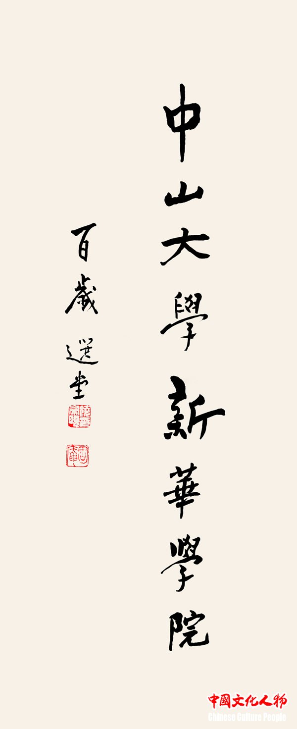 国学大师饶宗颐百岁寿诞之际题写的“中山大学新华学院”