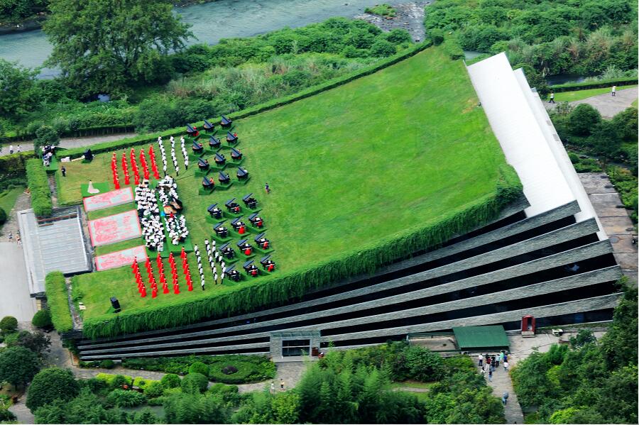 直升机吊装钢琴前往御笔台,飞越黄龙洞哈里路亚剧场绿色屋顶主演奏区