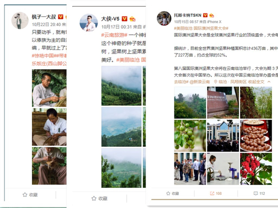 三农电商“传道士”、新农人行者@毕慧芳农业 发微博感叹:“临沧让我从惊异到惊喜,临沧澳洲坚果产业链已经根深叶茂,硕果累累,成为临沧农民的致富果,成为临沧产业链升级的发展果,成为消费者品尝改革开放40年成果的幸福果。”