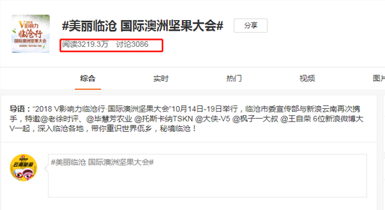 截至10月23日,微博话题#美丽临沧 国际澳洲坚果大会#累计阅读量3219.3万,讨论量达3086,数据仍在持续上涨。新浪云南官方微博及大V累计发布博文、小视频等超过七十余条,覆盖粉丝超500多万,在网络上形成了较大的影响力,集合网友力量,展现世界佤乡临沧的秘境风光及发展成果。