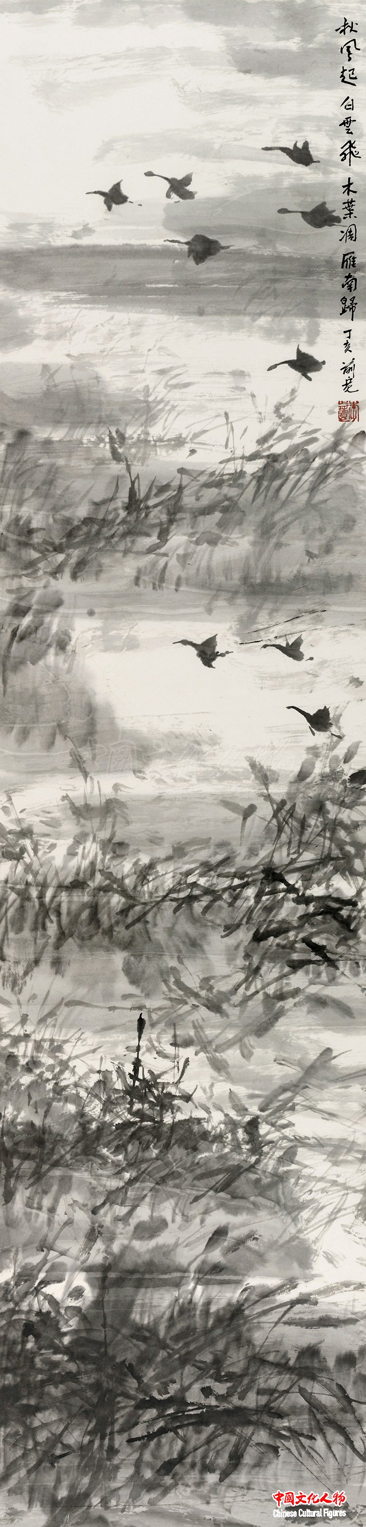秋风起白云飞-雁南归 136×33cm 李前宽作品