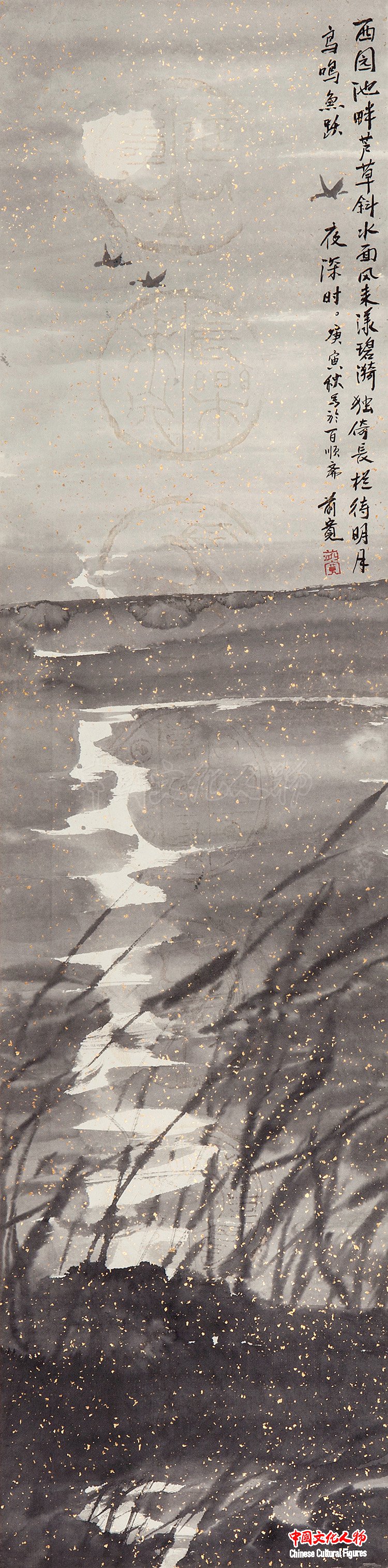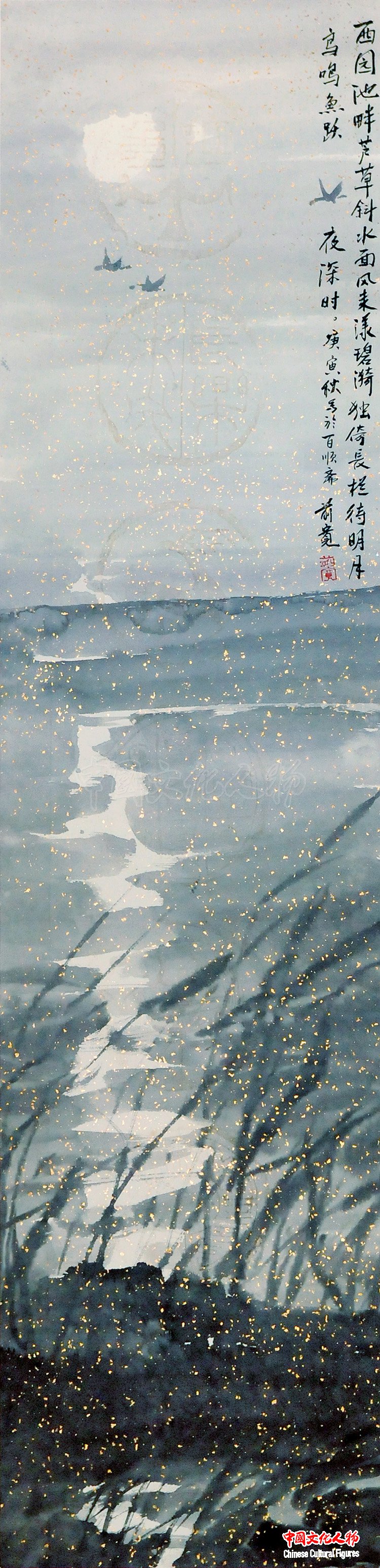 月下飞鸟 132×34cm 李前宽作品