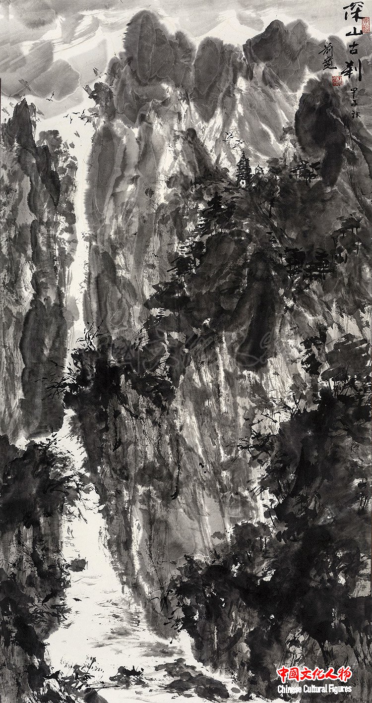 深山古刹 132×69cm 李前宽作品