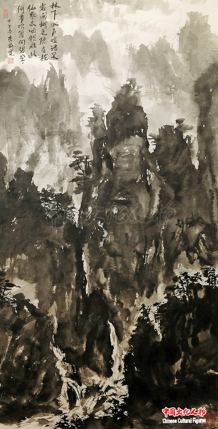 林下水声喧语笑 139×70cm 李前宽作品