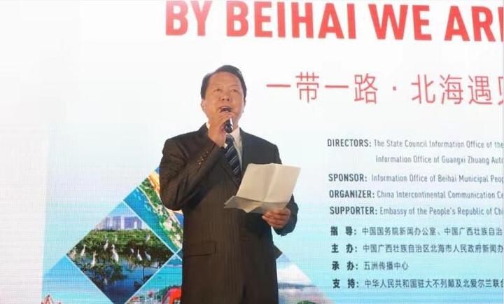 “一带一路·北海遇见北海”外宣文化交流团团长,北海市委宣传部常务副部长、北海市人民政府新闻办主任苏远信向到场嘉宾和媒体介绍了北海概况,并详细论述了在英国举行“一带一路•北海遇见北海”外宣文化交流活动的重要意义。苏远信称,2013年,习主席提出了面向全球的“一带一路”合作倡议。“一带一路”,既是商贸往来、互惠合作之路,也是文化交流、文明对话之路。2015年,习主席对英国进行了国事访问,开辟了中英关系“黄金时代”,有力推进了英中两国广泛领域的合作,以及两国人民的相互了解。