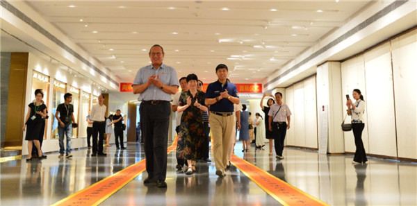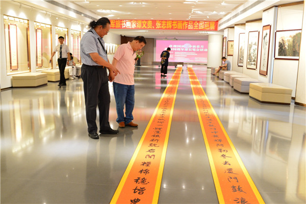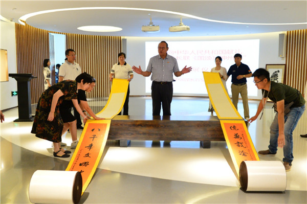 为庆祝中华人民共和国建国七十周年,向伟大祖国献礼,由纽约商务杂志社社长、全美中国作家联谊会执行主席、著名学者,旅美作家褚成炎教授和国家机关老干部科学健康协作中心副主任、中国部长将军画院秘书长、著名军旅书法家谭文贵先生共同创作完成的百米长联,今天在共和国将军部长见证下,首次解开她神秘的面纱,由中国部长将军画院正式对外发布。并将陆续邀请百名将军部长签字题跋,共祝中华人民共和国建国七十周年。同时,《百米长联神州行全国巡展活动》也将正式拉开序幕。