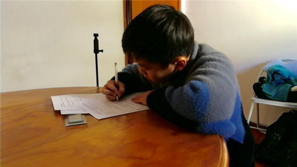 考试如期进行。因葡萄牙与国内时间有8小时的时差,1月9日国内时间17:00,葡萄牙时间早上9:00,儿童成长中心老师将密封试卷发给了黄俊彦爸爸。俊彦在葡萄牙独立考场进行了考试,考试全过程录下视频存档。1月10日,同样的方式,俊彦同学和其他孩子一样完成了三年级上册语文、数学、英语、科学期末考试。