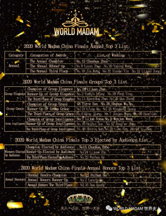 After the final, some of madams will represent China to compete at the 2020 World Madam Global Final.