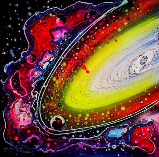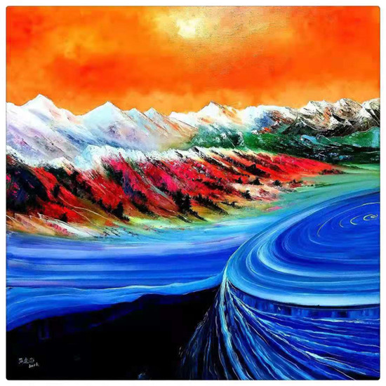 ▲黄建南的油画《冬奥之花》