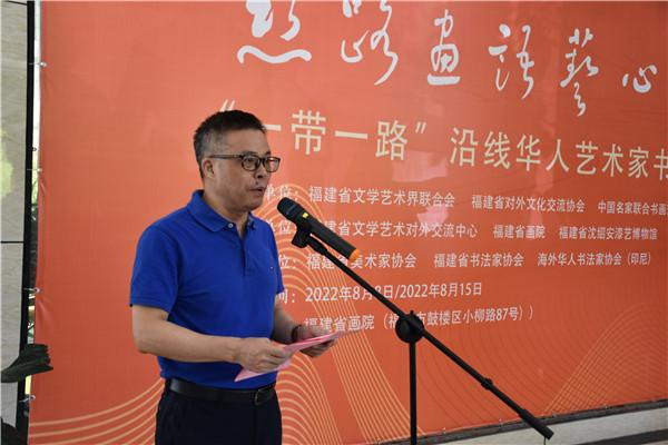 王秋梅代表主办单位致辞。她表示,活动充分发挥文联优势和文艺力量,以书画为纽带,紧密联系“一带一路”沿线国家和地区的华人文化艺术群体,择取展示中国变革和中国精神的题材,以艺术的形式展示“一带一路”建设的伟大成就,彰显自信自强、守正创新的中华文化时代光彩。她希望广大海外华人艺术家常来常往、以“艺”为媒,绘就更多文明互动交融的美好画卷,推动中国、福建与世界各国的交流合作,增强中华文化影响力,为实现中华民族伟大复兴中国梦贡献海内外文艺力量。