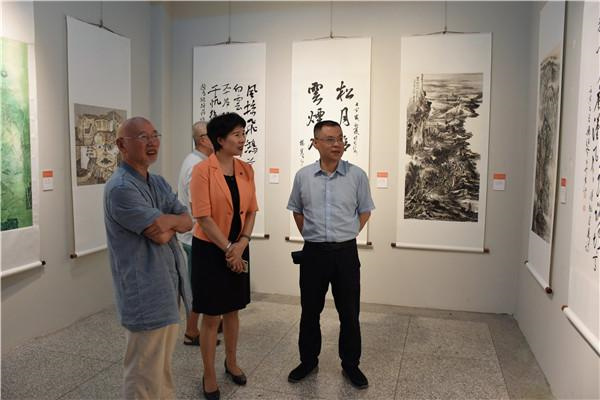 开幕式后,与会嘉宾一起参观画展,并对作品给予高度评价。