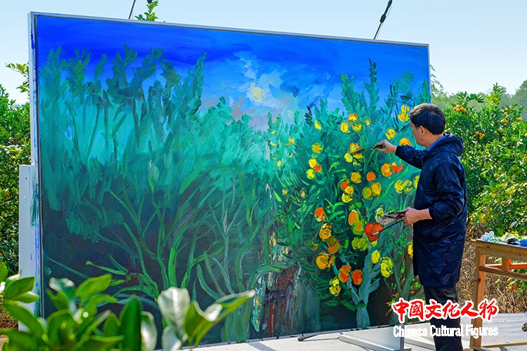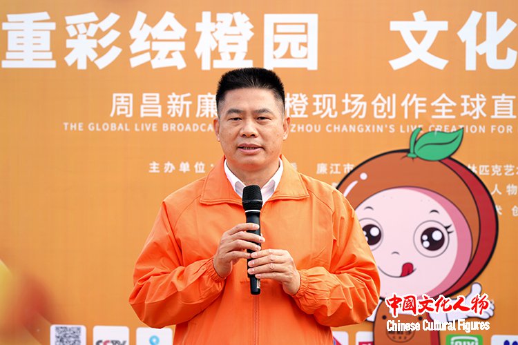 (中国文化人物记者:马将平、刘升)12月9日上午,由中共廉江市委、廉江市人民政府、中国文化人物杂志社、云南大学昌新国际艺术学院联合主办,廉江市文化广电旅游体育局承办的“重彩绘橙园 文化兴乡村”周昌新重彩油画廉江红橙现场创作全球直播活动在⼴东湛江廉江市高桥镇龙盛红橙园举行,中国当代著名画家周昌新现场作画廉江红橙,为世界观众呈现一场红橙与油画的文化视觉盛宴,一幅红橙重彩油画名作现场诞生,廉江红橙文化IP亮相世界舞台。
